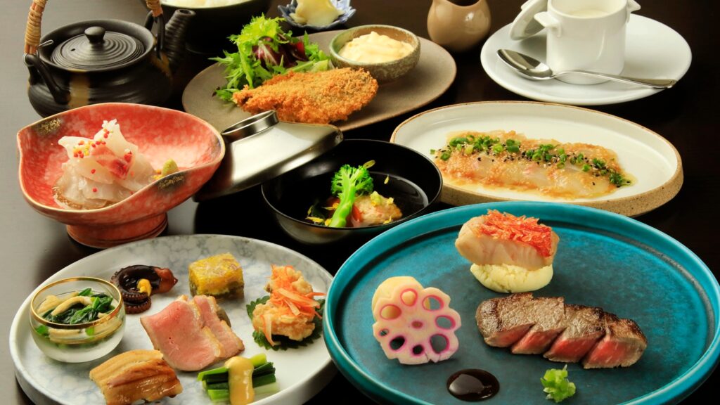 - 夕食:和洋創作コース(元ミシュランシェフ監修・フリーフロードリンク込み):相模湾の海の幸と伊豆山の山の恵みを使った鉄板ダイニング形式のコース。