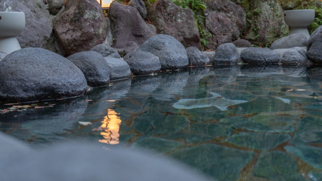 - 全室に源泉かけ流し温泉付き(大浴場ではなく、自室で入れる):「自分のペースで、着替えずに、すぐ温泉に入れる」という体験は、大浴場型の宿とは根本的に違います。夕食後に部屋でワインを飲みながら温泉に入り、テラスの夜景を眺めながら就寝——という体験を自然に楽しめます。