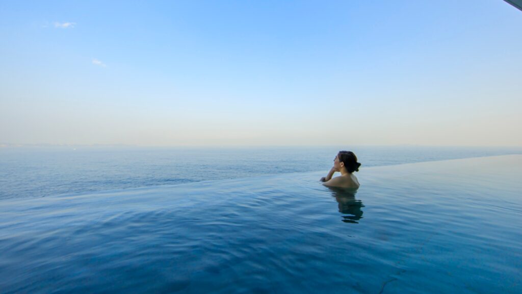 - ルームサービス15:00〜23:30まで全品無料:チェックイン後すぐからルームサービスが使える。「完全なおこもり」を支える設計で、バルコニーでスパークリングワインとおつまみを頼んで夕焼けを眺めるだけで旅の価値がでます。