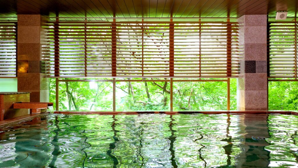 • 大型施設で設備が充実:大浴場は川沿いで渓流を感じる設計。規模感があるため1泊で温泉を満喫できる。